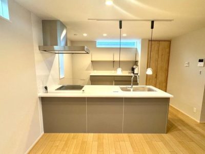 - スタイリッシュなフルフラットキッチンを採用しております。IHコンロ仕様、食器洗い乾燥機付。スワン型水栓がおしゃれです。