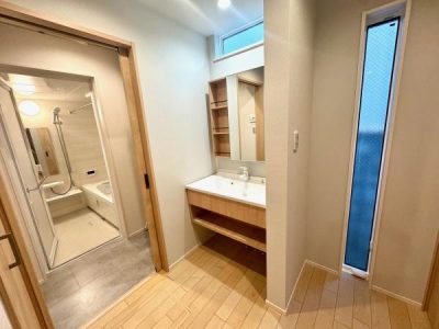 - 脱衣スペースと洗面室に間仕切りがあり生活導線の取れた間取りとなっております。